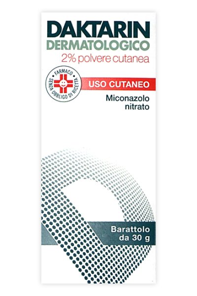 PosologiaInfezioni cutanee il trattamento va proseguito giornalmente e ininterrottamente almeno fino a una settimana dopo la scomparsa dei sintomi, e può durare da 2 a 6 settimane, in funzione del tipo e dell’estensione dell’infezione. Lavare la zona interessata e asciugare bene. Trattare non solo la parte infetta, ma anche l’area intorno ad essa. Lavare accuratamente le mani dopo ciascuna applicazione per evitare di trasferire i germi ad altre parti del corpo o ad altre persone. Generalmente, si usano in combinazione DAKTARIN DERMATOLOGICO polvere o spray cutaneo, polvere con DAKTARIN DERMATOLOGICO crema. Polvere cutanea - Spray cutaneo, polvere Sono indicati per il trattamento delle lesioni umide. Applicare una quantità di polvere sufficiente a coprire la zona interessata 2 volte al giorno. Nel caso si stia usando in combinazione anche DAKTARIN DERMATOLOGICO crema, è sufficiente usare sia la polvere che la crema una volta al giorno. Nelle infezioni dei piedi si consiglia di cospargere quotidianamente i piedi con DAKTARIN DERMATOLOGICO polvere durante e dopo il trattamento con altra formulazione topica (DAKTARIN DERMATOLOGICO crema), in particolare gli spazi tra le dita, e anche le calze e le scarpe. Crema Applicare sulla lesione 1 centimetro di crema (o più a seconda dell’estensione della lesione) 2 volte al giorno, quindi spalmare con le dita, fino a completo assorbimento. Nel caso si stia usando anche DAKTARIN DERMATOLOGICO polvere, si raccomanda l’applicazione di entrambe le formulazioni una volta al giorno. Infezioni delle unghie Tagliare le unghie infette più corte possibile. Continuare il trattamento ininterrottamente anche dopo la caduta dell’unghia infetta (per lo più dopo 2–3 settimane), fino alla sua completa ricrescita e alla guarigione definitiva delle lesioni (raramente prima di 3 mesi). Può essere necessario associare anche un trattamento con altri farmaci. Soluzione cutanea DAKTARIN DERMATOLOGICO soluzione si applica con il pennello inserito nel tappo del flacone. 1–2 volte al giorno spennellare la soluzione sull’unghia infetta, tutt’intorno ad essa e, se possibile, sotto di essa e lasciar asciugare. Una volta asciutta la soluzione forma un film occlusivo sull’unghia. Prima dell’applicazione successiva, è necessario pulire l’unghia con acetone. Se questo procedimento non viene eseguito, gli strati sovrapposti diventano troppo spessi e DAKTARIN DERMATOLOGICO soluzione non può più raggiungere l’unghia. Crema Applicare un po’ di crema 1–2 volte al giorno sull’unghia infetta, poi spalmare con le dita; ricoprire l’unghia con un bendaggio occlusivo non perforato.