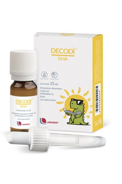 Decodì è un integratore alimentare a base di vitamina D3 con acido decosaesaenoico (DHA). Il DHA contribuisce al mantenimento della normale funzione cerebrale e visiva, la vitamina D3 contribuisce al normale assorbimento/utilizzo del calcio e del fosforo.