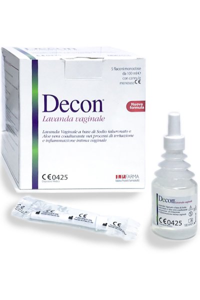 Confezione contenente 5 flaconi monodose da 100 ml, 5 cannule vaginali monouso.