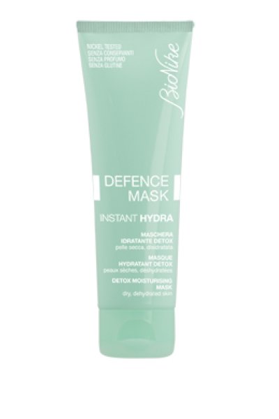 DEFENCE MASK INSTANT HYDRA Maschera formulata con un mix esclusivo di acido ialuronico a diversi pesi molecolari ed estratto di malachite, per un'intensa azione idratante detossinante.