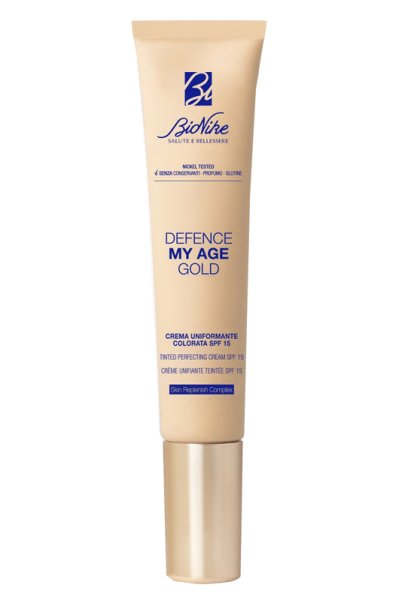 Crema perfezionante con fotoprotezione UVA e UVB che in un solo gesto uniforma, illumina e leviga la pelle.