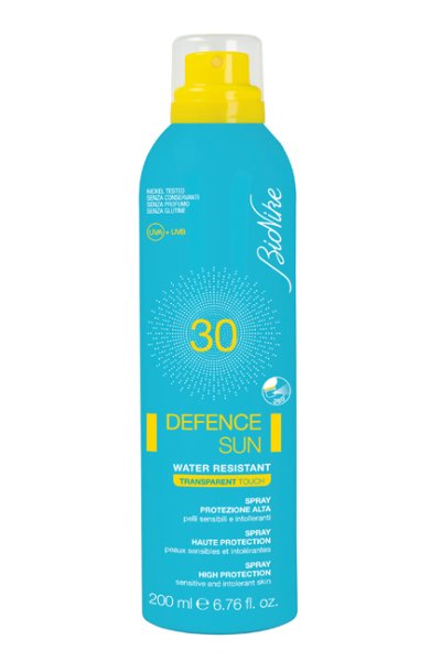 Spray solare dalla texture trasparente e non appiccicosa, senza alcool e resistente all’acqua.