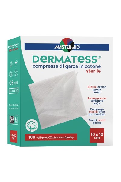 Dispositivo medico CE 0373. Morbide compresse di garza idrofila. Non si attaccano alla ferita, non sfilacciano ed hanno un elevato potere di assorbimento. Sterili.Indicate come barriera per la compressione e l'assorbimento degli essudati. Per la detersione, pulizia e disinfezione di ferite di ogni tipo. Non utilizzare come invasivo.