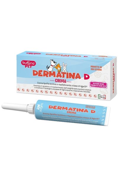 Dermatina D favorisce il ripristino del naturale film idrolipidico cutaneo ed il mantenimento dell’integrità della funzione barriera cutanea. Risulta utile nel trattamento lenitivo di problemi dermatologici quali irritazioni ed arrossamenti (sfregamento tra le pieghe cutanee, punture di parassiti o insetti) ed in caso di screpolature o secchezza dell’epidermide per esposizione ad agenti ambientali (freddo, caldo, allergeni).
