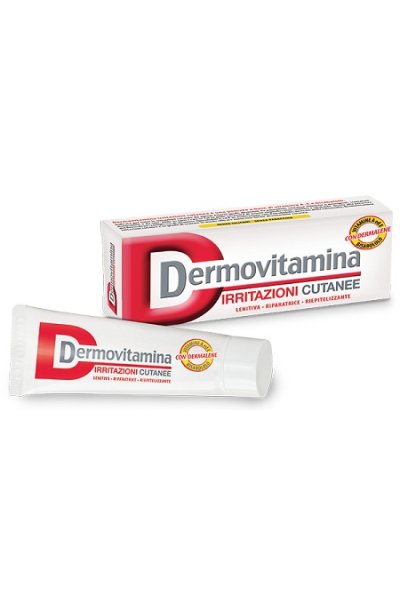 LENITIVA - RIPARATRICE - RIEPITELIZZANTEPomata a base di vitamina E, vitamina A, bisabololo, fitosteroli e un particolare derivato dell’acido β glicirretico con notevoli proprietà lenitive. Contiene un’alta percentuale di un particolare olio vegetale (olus oil) con un’elevata azione nutriente ed emolliente cutanea. Grazie alla presenza del Dermalene, complesso di vitamine liposolubili A ed E in associazione con il bisabololo, derivato della camomilla, Dermovitamina irritazioni cutanee è in grado di trattare in modo efficace numerose forme di irritazione cutanea. Il prodotto è privo di siliconi, di paraffina ed è dermatologicamente testato. Dermovitamina risulta utile in tutte le affezioni cutanee da agenti esterni quali: dermatiti da pannolino, sostanze chimiche o detergenti, scottature domestiche e da sole. Utile in tutti i casi in cui la pelle necessita di azione riepitelizzante, idratante e lenitiva, per pelle particolarmente secca e disidratata, dopo la rasatura, contro gli sfregamenti (interno coscia, ascelle, pliche lombari...).