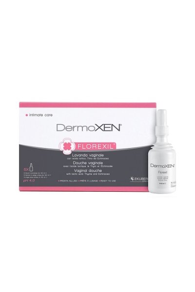 Il prodotto è costituito da 5 flaconi di lavanda vaginale Dermoxen Florexil monouso da 140 ml (già notificata) contenenti una soluzione acquosa, con odore caratteristico, proprio degli ingredienti vegetali, contenuta in flacone in PE-LD di colore bianco, chiuso con un tappo a pressione, da cui si estrae la cannula, ricoperta da un cappellotto che garantisce “inviolabilità”. I 5 flaconi da 140 ml risultano confezionati in astuccio in cartone litografato. L’irrigazione vaginale avviene erogando la soluzione pronta all’uso contenuta nel flacone per schiacciamento del corpo dello stesso, dopo aver tolto, il cappuccio di chiusura applicato sul tappo, ed estratta la cannula seguendo le istruzioni dettagliate riportate nel foglio illustrativo. DermoXEN Florexil Lavanda Vaginale, grazie alla presenza sinergica degli ingredienti presenti è indicato quale trattamento detergente, igienizzante, deodorante e rinfrescante, tramite irrigazione vaginale; è inoltre indicato come coadiuvante nel trattamento preventivo di irritazioni, infiammazioni ed eventuali successive lesioni. Dopo l’utilizzo lascia un piacevole senso di freschezza e benessere. Per l’uso, leggere attentamente il foglio istruzioni interno alla confezione.