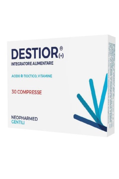Integratore alimentare a base di acido R-tioctico e vitamine. Contine una molecola normalmente sintetizzata dall'organismo, l’acido tioctico o α-lipoico nella sua forma fisiologica R(+). L’acido R(+) tioctico/α-lipoico è sintetizzato nei tessuti ed è inoltre presente in taluni alimenti di normale consumo. La formulazione di DESTIOR contempla anche un apporto vitaminico ed in particolare vitamina E che contribuisce alla protezione delle cellule dallo stress ossidativo, e vitamina del gruppo B6 che contribuisce al normale funzionamento del sistema nervoso.Ingredienti