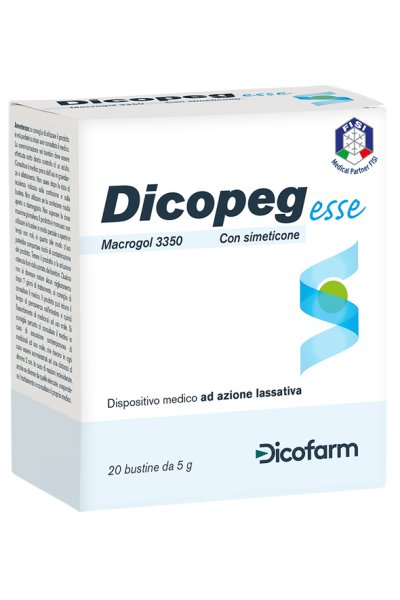 In caso di reazioni indesiderate, anche se diverse da quelle elencate, sospendere il trattamento e consultare il proprio medico. Potrebbero verificarsi alcuni disturbi gastro- intestinali (mal di pancia, flatulenza, gonfiore addominale, nausea e incontinenza fecale). La diarrea è un effetto secondario all'assunzione di dosi eccessive di Dicopeg esse ed è evitabile diminuendo la dose di assunzione. Sono stati riportati raramente casi di reazioni da ipersensibilità (rash cutaneo) a seguito dell'utilizzo di prodotti contenenti macrogol. Nel caso, sospendere il trattamento e consultare il medico.