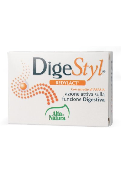Integratore alimentare a base di Redylact, composto standardizzato Alta Natura (galattosidasi, Lactobacillus acidophilus e Bifidobacterium bifidum utili per l’equilibrio della flora batterica intestinale) ed Enzymix, miscela di enzimi da maltodestrine fermentate da Aspergillus oryzae. Il carciofo agisce sull’eliminazione dei gas intestinali, mentre il ginger risulta utile per regolare la motilità gastrointestinale. Con estratto di papaia ad azione attiva sulla funzione digestiva.