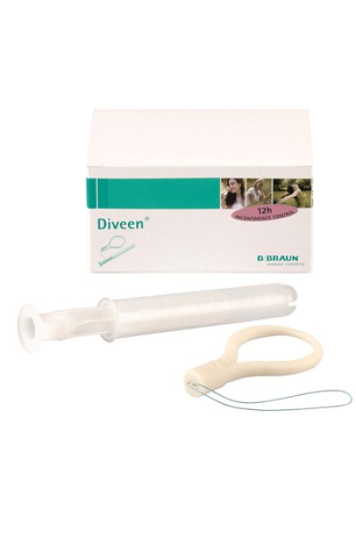 Dispositivo medico per la gestione dell'incontinenza urinaria da sforzo. L'incontinenza urinaria da sforzo o da stress (IUS) è la perdita involontaria di urina attraverso l'uretra a seguito di un aumento della pressione addominale e rappresenta la forma più comune di incontinenza femminile. I sintomi dell'incontinenza da sforzo comprendono perdite involontarie di urina che non possono essere contrastate quando ci si sottopone ad un piccolo sforzo oppure, ad esempio, quando si starnutisce, si ride, durante l'esercizio fisico o l'attività sessuale. Queste perdite possono consistere in poche gocce di urina oppure essere più consistenti e provocare irritazioni cutanee nei punti in cui l'urina entra in contatto con la pelle. Nonostante il nome, l'incontinenza da stress non è causata da fattori psicologici, ma tra i suoi sintomi secondari si possono contare anche ansia e disagio a causa dell'imbarazzo provocato da questo disturbo. La IUS è spesso vissuta con depressione ed isolamento legati al timore di non riuscire a controllare la perdita urinaria. Per questo, la IUS incide pesantemente sui rapporti sociali, l'intesa di coppia e pregiudicare, quindi, la qualità della vita di chi ne soffre. Diveen è il primo dispositivo medico intravaginale in silicone anallergico completamente discreto, invisibile e clinicamente provato adatto a tutte le donne che soffrono di perdite di urina. Diveen è stato disegnato e ideato per supportare la parete vaginale interna sottostante il collo della vescica. Quando viene compiuto uno sforzo, il peso della vescica determina una pressione sull'anello flessibile del dispositivo. Di conseguenza la parte rigida del Diveen provoca la chiusura dell'uretra riducendo notevolmente il rischio di perdite di urina. Diveen è di semplice utilizzo, si inserisce e si rimuove come un tampone vaginale grazie all'applicatore in dotazione e al cordino terminale. Diveen non interferisce con il fisiologico ciclo minzionale, può, quindi, essere mantenuto in situ durante la minzione.