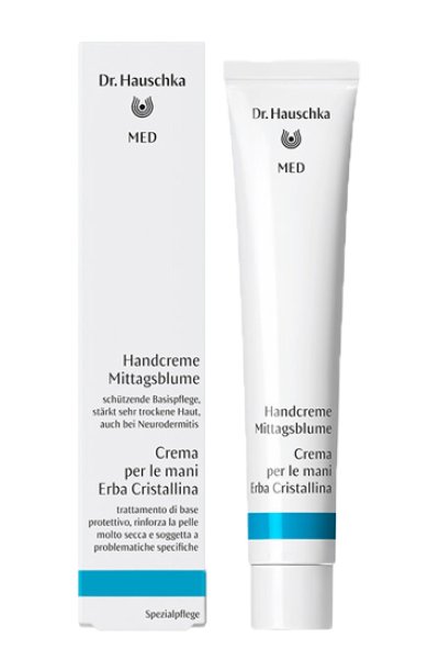 La Crema per le mani Erba Cristallina Dr.Hauschka MED è concepita per le particolari esigenze della pelle molto secca, estremamente stressata, che tende a presentare problematiche specifiche. Si prende cura della pelle sciupata e screpolata offrendole nutrimento e idratazione. La sua composizione a base di succo di erba cristallina ottenuto per spremitura, ad azione idratante, attenua percettibilmente la secchezza cutanea, riduce la sensazione di tensione e previene l’insorgere di pruriti. Le mani ruvide, che tendono a presentare desquamazioni, tornano nuovamente morbide e lisce.