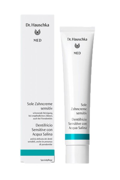 Svolge una pulizia delicata e profonda dei denti sensibili. La sua composizione a base di acqua salina, sale marino, estratti vegetali e agenti abrasivi naturali, rimuove delicatamente la placca e protegge i denti sensibili. L’acqua salina sorgiva di Bad Dürrenberg, in combinazione con sale marino, stimola la naturale salivazione, neutralizzando gli acidi nocivi e sostenendo così la remineralizzazione dei denti. La resina di mastice, tradizionalmente nota in odontoiatria, assicura la cura e l’equilibrio del cavo orale. L’acqua di amamelide rinforza la mucosa. Gli oli essenziali di salvia, timo e limone, si prendono cura del cavo orale e conferiscono freschezza all’alito.