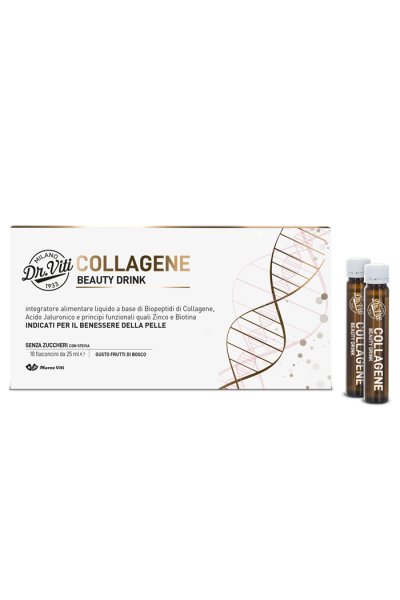 Integratore alimentare liquido formulato con biopeptidi di collagene idrolizzato, acido jaluronico e altri principi funzionali quali zinco e biotina, indicati per il benessere della pelle.