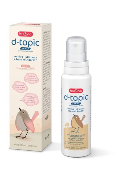 D-Topic spray è utile nella prevenzione e nel trattamento lenitivo di irritazioni e di arrossamenti cutanei di varia natura (ad es. sfregamento da pannolino o esposizione ad agenti esterni).