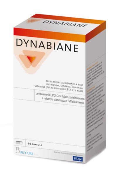 Dynabiane è un integratore alimentare a base di ginseng, guaranà, tirosina e rame. Dynabiane apporta anche folato e vitamine B6, B12 e C che contribuiscono a ridurre la stanchezza e l'affaticamento.