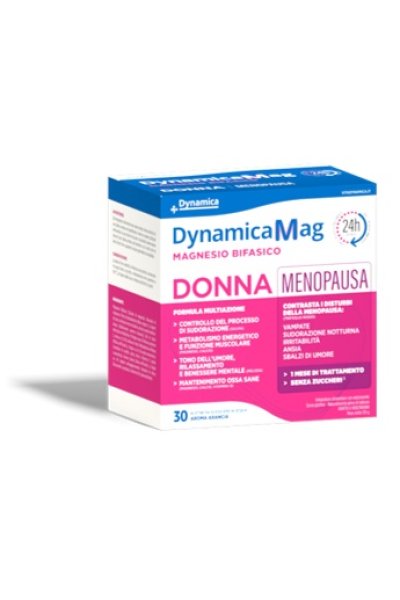 Magnesio bifasico [ossido di magnesio; idrossido di magnesio; fibra di barbabietola (Beta vulgaris L.); agenti di carica: cellulosa microcristallina, idrossi-propil-metilcellulosa; stabilizzante: gomma d'acacia], sali di calcio dell'acido ortofosforico, trifoglio rosso (Trifolium pratense L.) erba e.s. tit. 8% isoflavoni totali, maltodestrina, melissa (Melissa officinalis L.) foglie e.s. tit. 2% acido rosmarinico; correttore di acidità: acido citrico; vitamina C (acido L-ascorbico), aroma, salvia (Salvia officinalis L.) foglie e.s. 4:1; agente antiagglomerante: biossido di silicio; edulcorante: sucralosio; vitamina D3 (colecalciferolo).