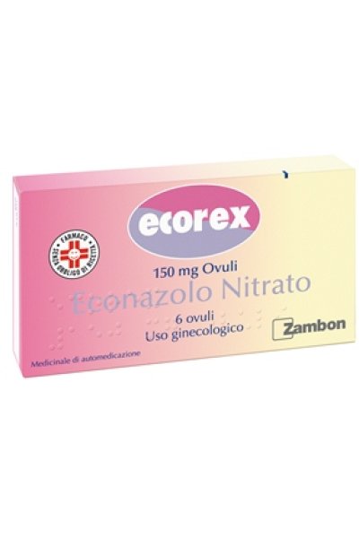 Gravidanza e allattamentoNelle donne in gravidanza e nei bambini, il prodotto va somministrato in caso di effettiva necessità sotto il diretto controllo del medico. Negli studi sugli animali econazolo nitrato non ha mostrato effetti teratogeni ma ha mostrato effetti fetotossici nei roditori a dosi materne subcutanee di 20 mg/kg/giorno ed a dosi materne orali di 10 mg/kg/giorno. Non è nota la rilevanza di tale effetto negli esseri umani. Non vi sono studi adeguati e controllati, né dati epidemiologici, sugli effetti indesiderati derivanti dall’utilizzo di Ecorex in gravidanza. In studi post–marketing non sono stati segnalati effetti indesiderati sulla gravidanza o sulla salute del feto e del neonato dovuti a Ecorex. A causa dell’assorbimento sistemico, Ecorex non deve essere usato durante il primo trimestre di gravidanza se non indicato dal medico. Ecorex può essere usato durante il secondo ed il terzo trimestre di gravidanza se il potenziale beneficio per la madre supera i possibili rischi per il feto. Allattamento Dopo somministrazione orale di econazolo nitrato nelle ratte durante l’allattamento, econazolo e/o i suoi metabolici sono stati escreti nel latte materno e rilevati nei piccoli. Non è noto se la somministrazione vaginale di Ecorex possa provocare un assorbimento sistemico di econazolo sufficiente a produrre concentrazioni rilevabili dello stesso nel latte materno umano. Deve essere usata cautela quando Ecorex viene somministrato alle donne durante l’allattamento.