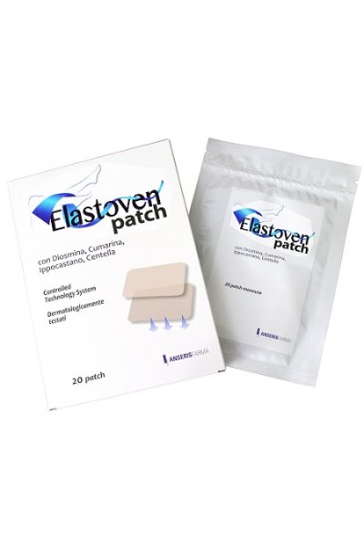 Elastoven patch è un cerotto transdermico per il trattamento di edemi e della stasi venosa e linfatica. A base di cumarina, ribes nero e diosmina, agisce sulla costrizione del vaso e sulla permeabilità, consente il riassorbimento dei liquidi in eccesso (attività protolitica e prolinfocinetica), riduce l'infiammazione.