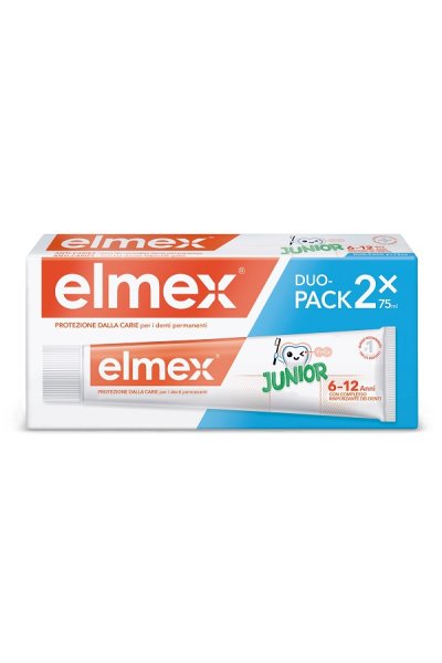 Dentifricio elmex Junior per i bambini dai 6 ai 12 anni, studiato appositamente per le esigenze specifiche durante il cambio di dentizione. I nuovi denti permanenti, che iniziano a spuntare intorno ai sei anni, sono particolarmente esposti alla carie poiché lo smalto dentale inizialmente è ancora poroso e relativamente tenero. Una concentrazione più elevata di fluoruro promuove il processo di indurimento dei denti, aumentando così la resistenza dei denti alle aggressioni acide e al conseguente rischio di carie. Grazie alle caratteristiche specifiche dei fluoruri amminici contenuti nel dentifricio, la protezione dalla carie è assicurata anche per diverse ore dopo avere spazzolato i denti. Il gusto delicato stimola i bambini a passare dal dentifricio bimbi, con un contenuto di fluoruro inferiore, a un prodotto con una concentrazione di fluoruro adatta alla loro età.