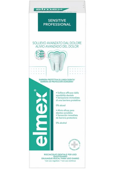 SENSITIVE PROFESSIONAL COLLUTTORIOCollutorio con fluoruro amminico, utile nei casi di colletti dentali scoperti e denti sensibili.