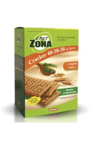 Cracker al rosmarino contengono ingredienti d’eccellenza anche nel gusto, come olio extravergine d’oliva, farro e soia. Contengono inoltre acido oleico (7,5%), un grasso insaturo. La sostituzione nella dieta dei grassi saturi con grassi insaturi contribuisce al mantenimento di livelli normali di colesterolo nel sangue. La ricchezza in proteine e in fibre rende questo prodotto ideale per chi segue la strategia alimentare Zona. Il prodotto va utilizzato nell’ambito di una dieta variata ed equilibrata e uno stile di vita sano.Sono confezionati in pratici minipack da tre cracker (un minipack=1 blocco) per portare sempre con te un gustoso spuntino 40-30-30 da 1 blocco.