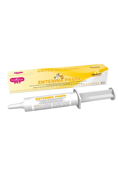 ENTERINA PASTA è formulata appositamente in pasta appetibile per gatti, cani di piccola taglia e cani di taglia toy; con un accresciuto livello più elevato di elettroliti, farina di Carruba, Inulina da radici di cicoria e carboidrati altamente digeribili.