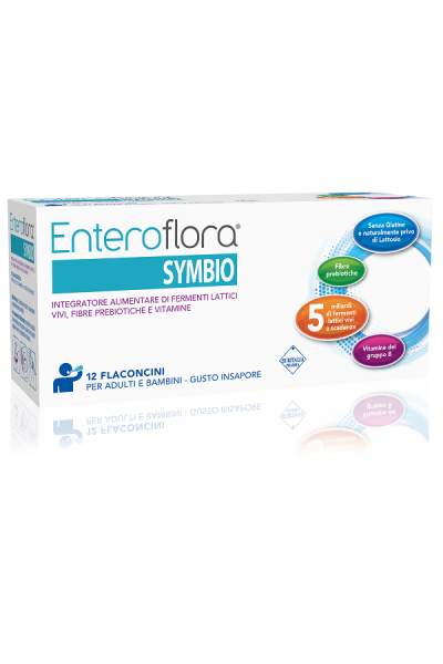 Enteroflora Symbio contiene cinque ceppi di fermenti lattici vivi e attivi più frutto-oligosaccaridi ad azione prebiotica; l'apporto di queste sostanze ad azione simbiotica alla flora batterica intestinale è utile in casi di alterazione della stessa. Enteroflora Symbio assicura l'apporto delle vitamine del gruppo B che contribuiscono al normale metabolismo energetico. La vitamina B6 contribuisce inoltre alla normale funzione del sistema immunitario.