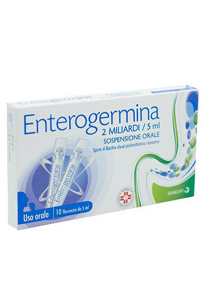 AvvertenzeAvvertenze speciali L’eventuale presenza di corpuscoli visibili nei flaconcini di ENTEROGERMINA è dovuta ad aggregati di spore di Bacillus clausii; non è pertanto indice di prodotto alterato. Agitare il flaconcino prima dell’uso. Precauzioni d’impiego Nel corso di terapia antibiotica si consiglia di somministrare il preparato nell’intervallo fra l’una e l’altra somministrazione di antibiotico.