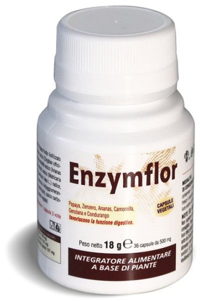 Amido di riso fermentato, papaya frutto liofilizzato (Carica papaya L.) (titolato 450 UP/g), ginger estratto secco (Zingiber officinale Roscoe) rizoma (titolato 5% in gingeroli), ananas estratto secco (Ananas comosus L.) frutto (titolato 250 GDU/g), camomilla estratto secco (Matricaria camomilla L.) fiori, genziana estratto secco (Gentiana lutea L.) radice, condurango (Marsdenia condurango Reich.) corteccia, Antiagglomeranti: amido di mais pregelatinizzato, calcio carbonato, biossido di silicio, magnesio stearato. Capsula vegetale: idrossipropilmetilcellulosa.