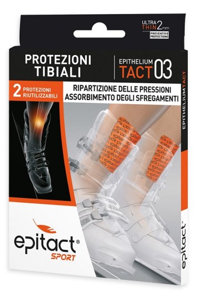 PROTEZIONI TIBIALI EPITHELIUMTACT 03 Le protezioni tibiali EPITHELIUMTACT 03 (30 usi in media) sono state appositamente progettate per prevenire sfregamenti, pressioni e ustioni che causano dolore allo stinco. Sono ideali per sciatori, alpinisti, snowboarder e rollermen.