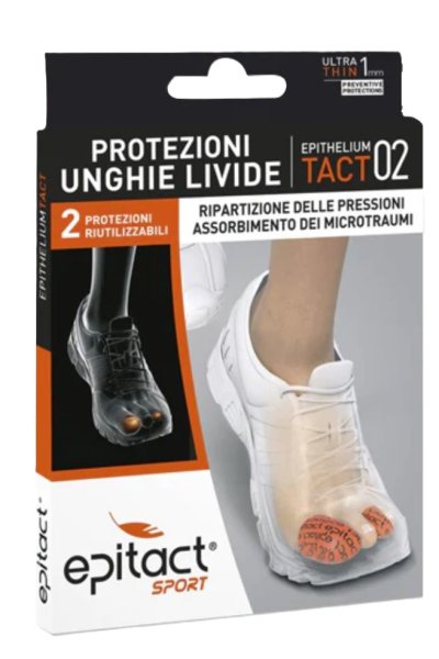 ERGONOMIA: Discrete e di modesto spessore, le protezioni per unghie livide EPITHELIUMTACT 02 sono state appositamente sviluppate per adattarsi perfettamente a qualsiasi tipo di calzatura. Le forme specifiche, che seguono l'ergonomia delle dita, danno un comfort immediato e garantiscono una perfetta tenuta durante tutta l'attività sportiva persino in condizioni estreme.