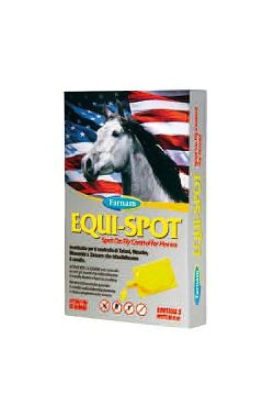 Equi-Spot protegge il cavallo da tafani, mosche, moscerini e zanzare sia in scuderia che all’aperto. La sua particolare formulazione ne garantisce la resistenza all’acqua ed al sudore, rendendolo un prodotto pratico ed efficace. Il prodotto esplica duplice azione verso gli artropodi ematofagi quando questi vengono a contatto con la parte trattata: 1) Insetticida/acaricida con tempi di contatto prolungati; 2) Irritante per l’insetto con tempi più brevi: quest’ultimo, conosciuto come effetto “antifeeding”, si manifesta con l’impossibilità da parte dell’artropode di effettuare il pasto di sangue e il suo conseguente allontanamento; Nel complesso, la somma dei due effetti protegge mediamente il cavallo da circa l’80% delle punture rispetto a soggetti non trattati. Il prodotto rimane efficace anche a distanza dal trattamento.