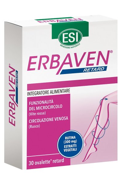 Erbaven Retard è un integratore alimentare a base di Troxerutina ed estratti titolati di ippocastano, vite rossa, centella, rusco e mirtillo. La centella, il rusco, il mirtillo, e la vite rossa favoriscono la funzionalità del microcircolo e sono utili in caso di pesantezza degli arti inferiori. L'ippocastano favorisce la funzionalità del microcircolo. Il rusco inoltre è utile per la funzionalità della circolazione venosa e del plesso emorroidario. La speciale formulazione consente una graduale disaggregazione dell'ovaletta lungo il tratto gastro enterico.