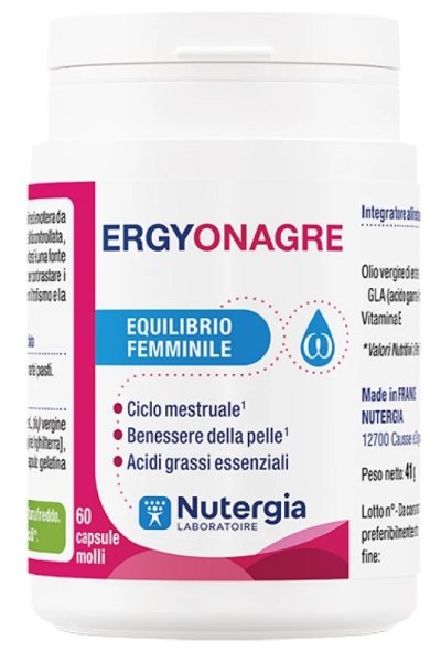 Integratore alimentare. Fornisce olio vergine di enotera da prima spremuta a freddo e di qualità controllata. L'olio di enotera è una fonte di acidi grassi polinsaturi, utile per contrastare i disturbi del ciclo mestruale e per il trofismo e la funzionalità della pelle.