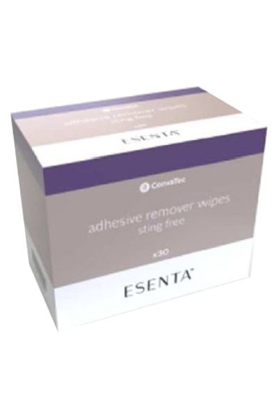 Le salviette per la rimozione adesivo Esenta sono realizzate in viscosa/poliestere di classe medicale ed imbevute in 3 ml di una formulazione fluida in silicone che interrompe il legame tra un adesivo e la cute consentendo una rimozione dell'adesivo più facile.