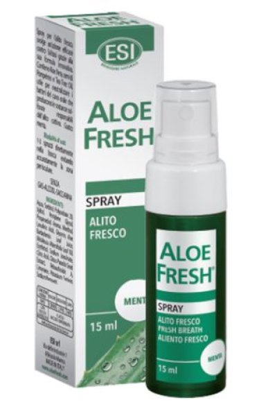 Il deodorante Aloe Fresh alito fresco svolge un’azione efficace contro l’alitosi grazie alla sua formulazione innovativa che permette, sfruttando l’effetto tamponante del chitosano, di neutralizzare i batteri del cavo orale che producono le sostanze solforate responsabili dell’alito cattivo. Le proprietà antisettiche del tea tree oil e dell’estratto di semi di pompelmo e quelle purificanti dell’aloe vera contribuiscono a rendere il prodotto naturalmente efficace. Come edulcoranti sono stati utilizzati l’estratto naturale dalle foglie di stevia e l’eritritolo.