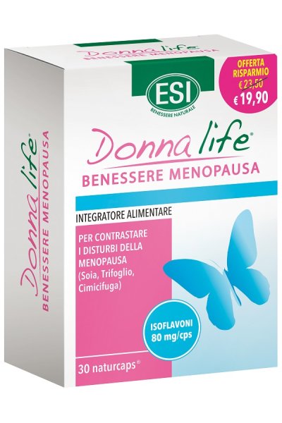 Integratore alimentare a base di isoflavoni da soia e del trifoglio con estratto di cimicifuga, con magnesio e vitamina B6. Formulato per alleviare alcuni sintomi della menopausa come vampate, sudorazione ed irritabilità. Il prodotto apporta in totale 80 mg/die di isoflavoni. La speciale formulazione studiata da ESI, utilizzando una capsula contenente 4 microtavolette a rilascio differenziato, permette un rilascio graduale e costante, garantendo all’organismo un tempo sufficiente per assimilare i principi attivi ed offrire quindi un’azione prolungata, definita azione retard.