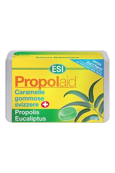 Caramelle gommose a base di Propolis al gusto di eucalipto, per il benessere della gola; senza zucchero con solo 1,5 kcal per caramella. Non contiene: derivati latte, zuccheri aggiunti, conservanti aggiunti, coloranti artificiali, ogm. Adatto ai vegetariani.Ingredienti