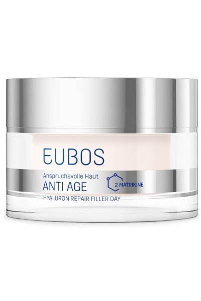 Eubos Hyaluron Repair Filler Day è una formula innovativa con triplo acido ialuronico che dona alla pelle un aspetto radioso e liftato. Una crema giorno viso filler che assicura un aumento significativo dell’idratazione della pelle e favorisce il rinnovamento cellulare negli strati cutanei più profondi.