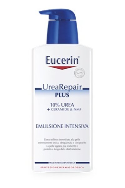 L'emulsione dona alla pelle estremamente secca, pruriginosa e desquamata il trattamento quotidiano di cui ha bisogno. La formula contiene Urea, Ceramide e altri Fattori di Idratazione Naturale (NMF) che legano l'acqua e ripristinano la sua naturale barriera protettiva per prevenire un'ulteriore perdita di idratazione e il prurito sul corpo. E' stato clinicamente comprovato che Eucerin UreaRepair Emulsione Intensiva 10% Urea dona sollievo immediato ed un'idratazione intensa, ritardando i sintomi della pelle estremamente secca e molto secca fino a 48 ore. La pelle risulta liscia e morbida. Adatta per i soggetti con Xerosi, Diabete, Psoriasi e Cheratosi Pilare. Anche come trattamento coadiuvante. Si assorbe velocemente, non unge, senza profumo, senza coloranti.