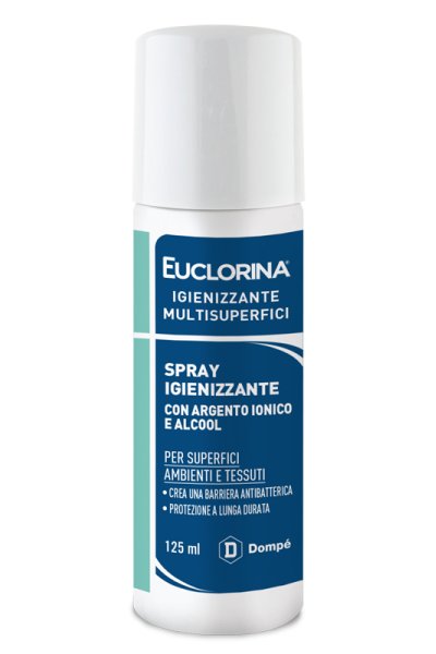 Euclorina Igienizzante Multisuperfici è un prodotto formulato per igienizzare rapidamente oggetti, superfici, ambienti e tessuti, sia in ambito domestico, che in ambito pubblico. Spruzzato sulle superfici, crea un film igienizzante e protettivo a lunga durata grazie alle proprietà dell'argento ionico. Non lascia aloni e residui.