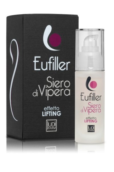 Siero concentrato, a base di Peptide sintetico, denominato siero di vipera, ad attività cosmetica neuromuscolare. Con acido ialuronico da biotecnologie nanometriche. La Vipera Templare in natura immobilizza le prede con il suo veleno. Da questo spunto abbiamo realizzato in laboratorio il peptide sintetico di Eufiller, che è in grado di ridurre, in piena sicurezza, le contrazioni muscolari della mimica facciale.