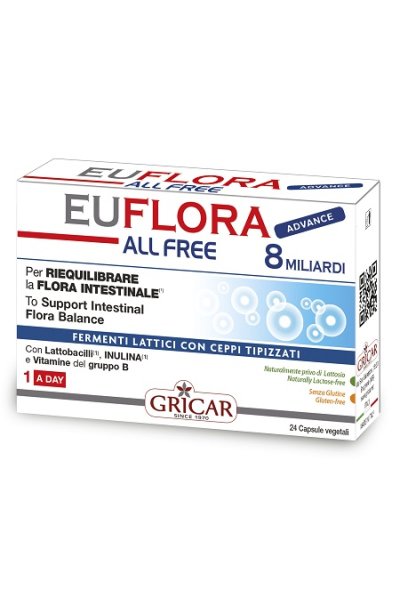 Descrizioneintegratore alimentare di Probiotici tipizzati, sviluppati dal progetto PROBIOPLUS 4 FOOD, vitamine del gruppo B ed inulina come prebiotico. Probiotici e prebiotici favoriscono l’equilibrio della flora intestinale. Le vitamine B contribuiscono al normale metabolismo energetico, inoltre acido folico e vitamina B6 aiutano la normale funzione del sistema immunitario.