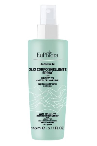 EuPhidra Olio Corpo Snellente spray è un trattamento multiazione che, associato a una dieta equilibrata e al movimento fisico, può risultare utile per contrastare gli inestetismi della cellulite. La formula contiene Lipout*, estratto d’alga che svolge un'azione termogenica sugli adipociti, responsabili dello strato adiposo sottocutaneo. Al Lipout* è associata un’efficacia rimodellante che, grazie a un processo brucia-grassi, aiuta a ridefinire la silhouette. Arricchito da un mix di oli naturali dalle riconosciute proprietà elasticizzanti, emollienti e antiossidanti, rende la pelle più elastica e tonica.
