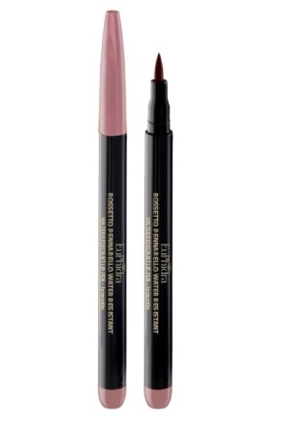 Rossetto in penna semi-permanente, 2 in 1 (contorno labbra e rossetto) con punta in fibra. L'applicatore in fibra dalla punta sottile è ideale per definire con precisione il contorno delle labbra o garantire un'applicazione piena e uniforme. Il colore a base d’acqua si fissa in modo impeccabile: è leggero, senza spessore e ad asciugatura istantanea.