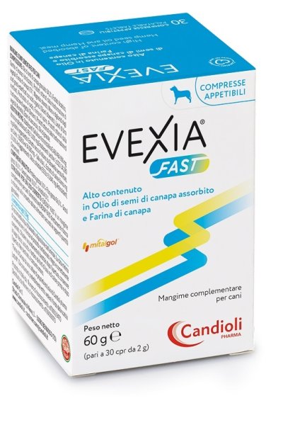 Somministrare EXEVIA FAST direttamente in bocca o miscelare alla consueta razione alimentare secondo le seguenti quantità giornaliere: 1 compressa ogni 15 kg.