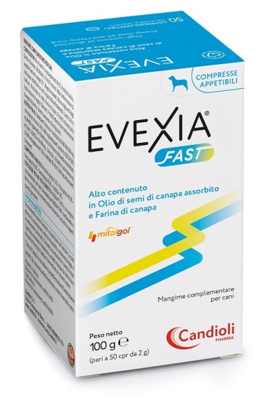 Somministrare EXEVIA FAST direttamente in bocca o miscelare alla consueta razione alimentare secondo le seguenti quantità giornaliere: 1 compressa ogni 15 kg.