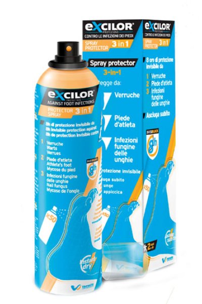 1)Prima di partecipare ad attività a piedi nudi (danza, arti marziali, yoga) e di camminare a piedi nudi in zone umide comuni, spruzzate una quantità sufficiente di Excilor Spray Protector 3 in 1 per coprire la pianta del piede e le dita.