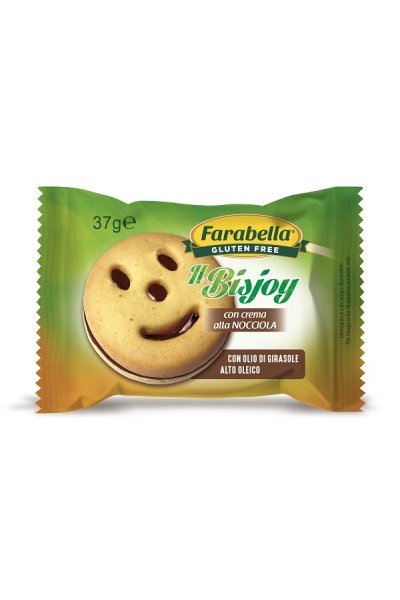 Frollino accoppiato con crema alla nocciola senza glutine specificamente formulato per persone intolleranti al glutine.