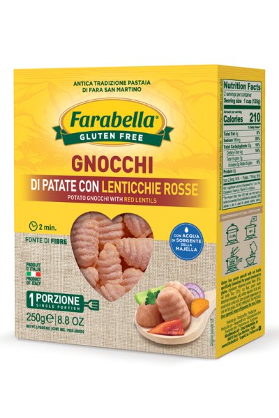 Patate in fiocchi reidratate (85%), farina di lenticchie rosse (10%), farina di riso, fecola di patate, pomodoro disidratato, sale; correttore di acidità: acido lattico; conservante: acido sorbico.